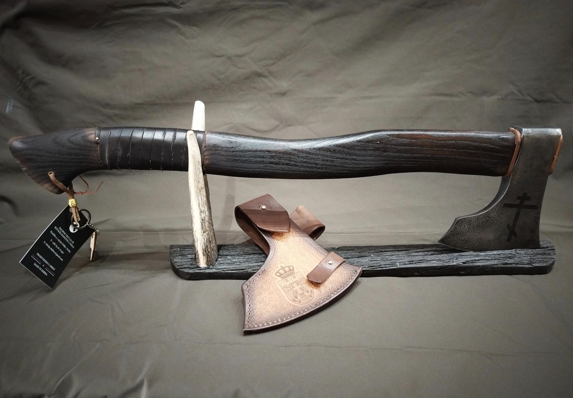 Sekira je izrađena od damaskus čelika.U našim maloprodajnim objektima nudimo pirotehniku razreda I i II, konfete, baklje, vulkane, petarde, vatrometne baterije kao i kompletnu opremu za lov koja uključuje oružje i municiju svih kalibara.