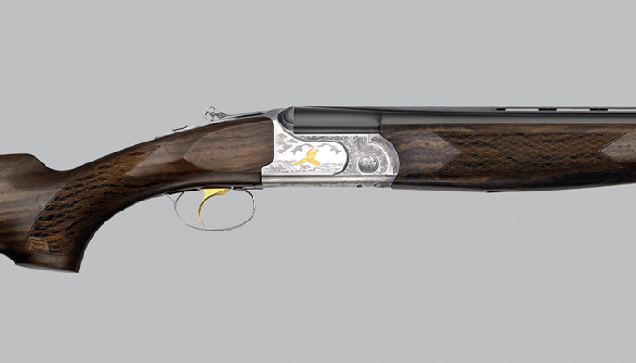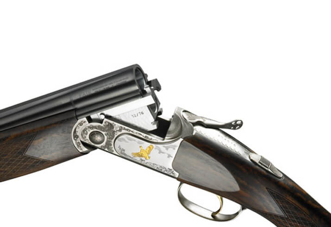 Nude se sa izbacivačem dugog hoda, zlatnim selektivnim jednostrukim okidačem, gumenim trzajnim jastučićem,zlatnim motivima.