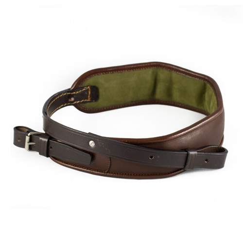 Kožni remnik za lovačku pušku, duži,  izrađen od prirodne kože, sa sigurnim metalnim krajevima za kačenje